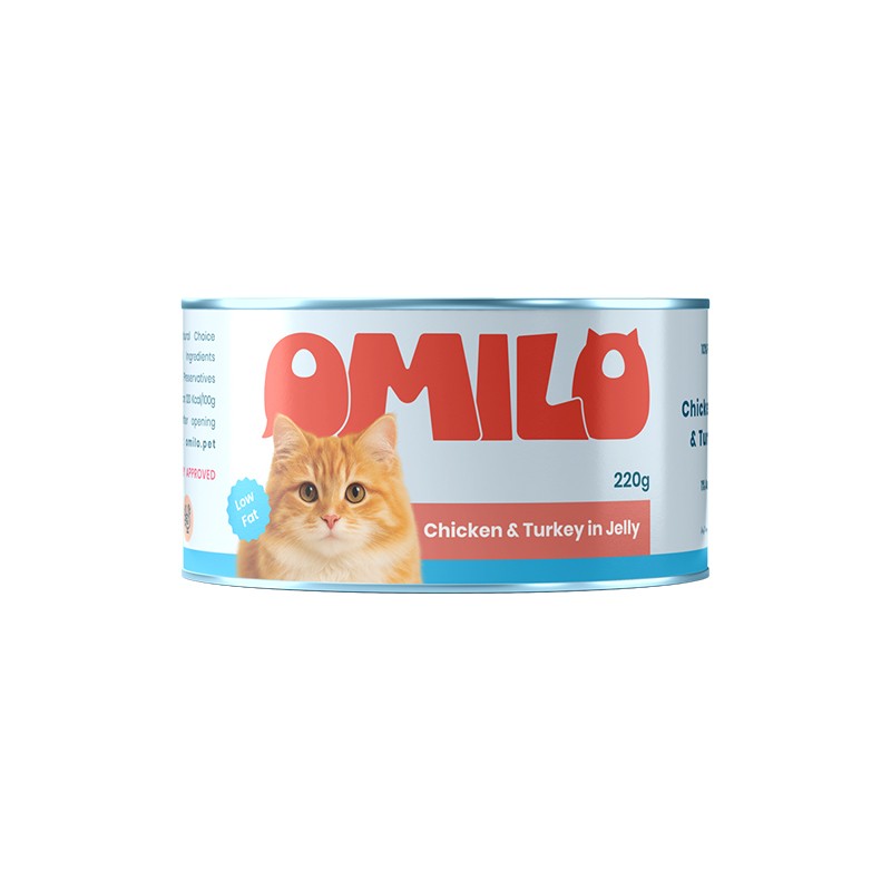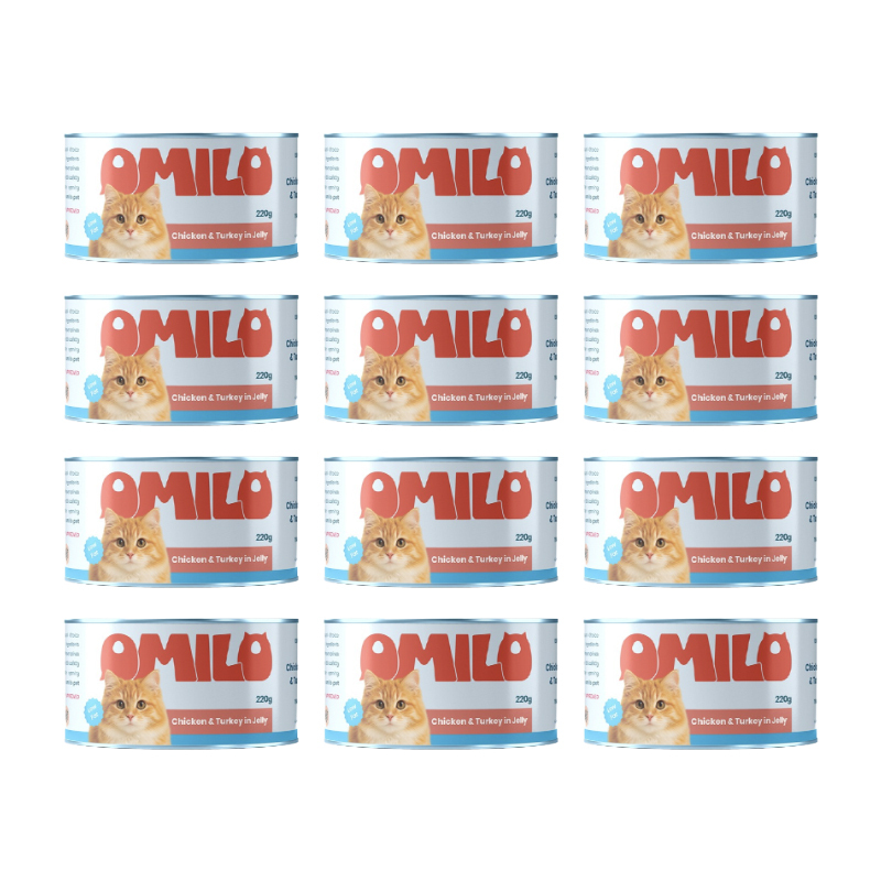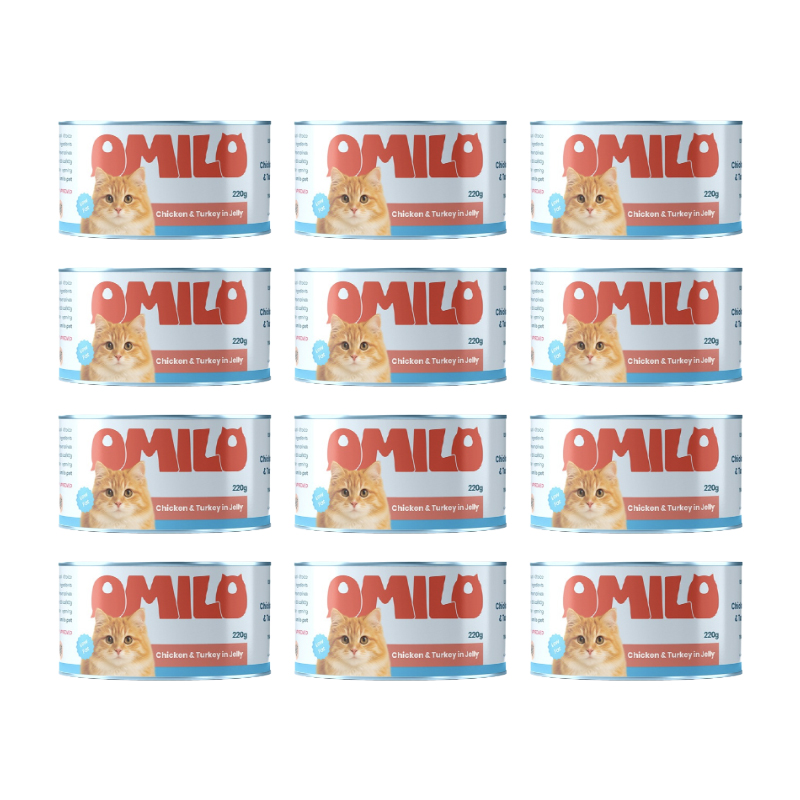 12 عدد کنسرو غذای گربه اومیلو نچرال با طعم مرغ و بوقلمون در ژله وزن 220 گرم