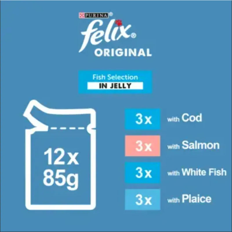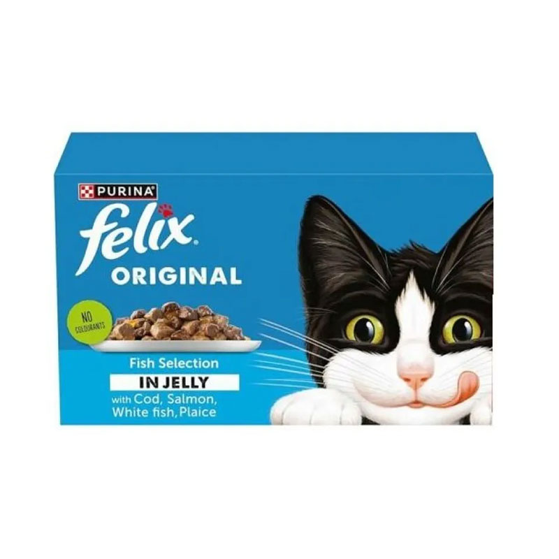 پوچ گربه فلیکس مدل پک میکس ماهی در ژله Felix Cat Pouch بسته 12 عددی