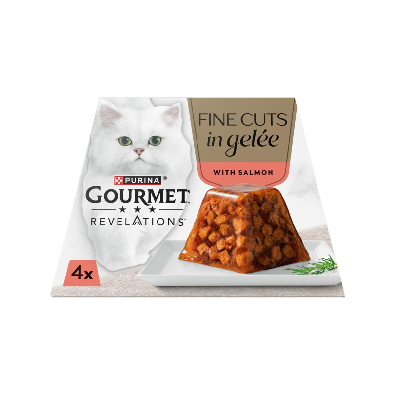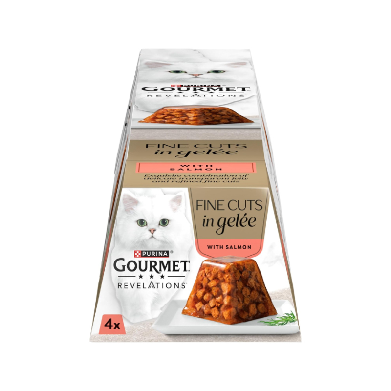 غذای کاسه ای گربه گورمت با طعم ماهی سالمون در ژله Gourmet Revelations with Salmon in Jelly بسته 4 عددی