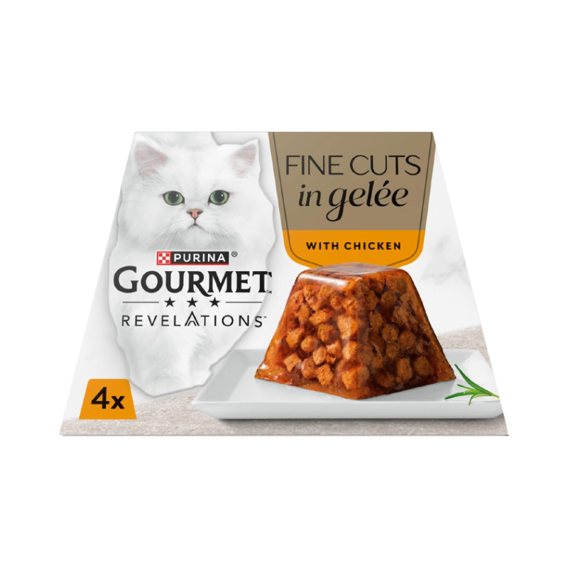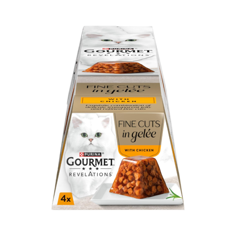غذای کاسه ای گربه گورمت با طعم ماهی مرغ در ژله Gourmet Revelations with Chicken in Jelly بسته 4 عددی