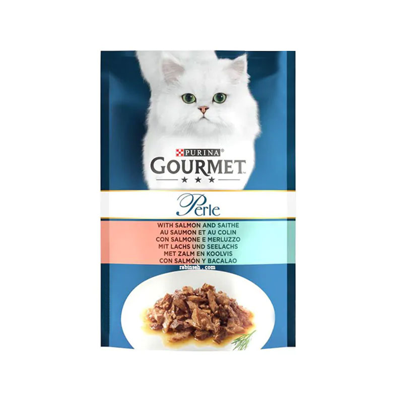 پوچ گربه گورمت با طعم سالمون و ماهی پولاک Gourmet Perle Cat Pouch وزن 85 گرم
