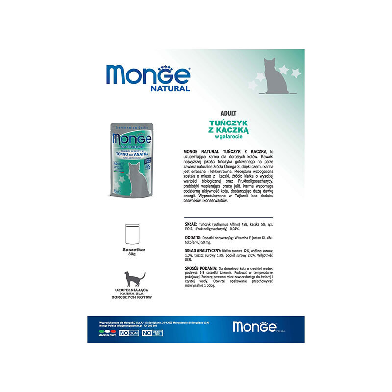 پوچ گربه مونژ با طعم ماهی تن و اردک Monge Natural Cat Pouch وزن 85 گرم
