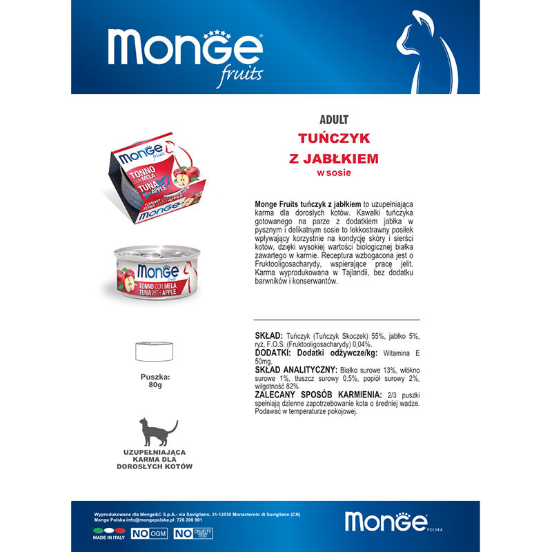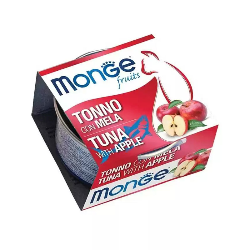 کنسرو غذای گربه مونژ با طعم ماهی تن و سیب Monge Fruits Cat Food وزن 80 گرم