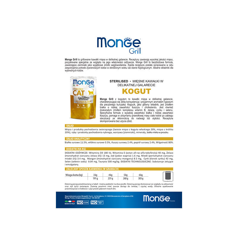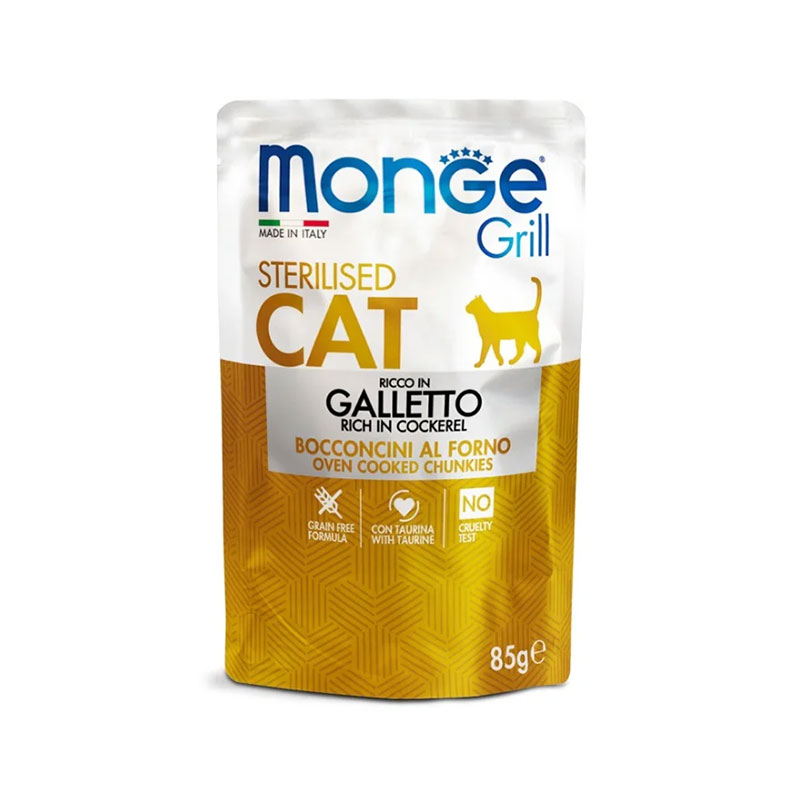 پوچ گربه بالغ عقیم شده مونژ با طعم خروس ایتالیایی Monge Grill Sterilised Cat Pouch وزن 85 گرم