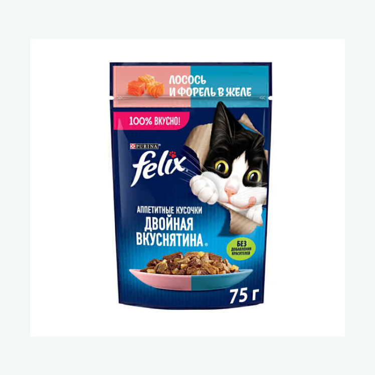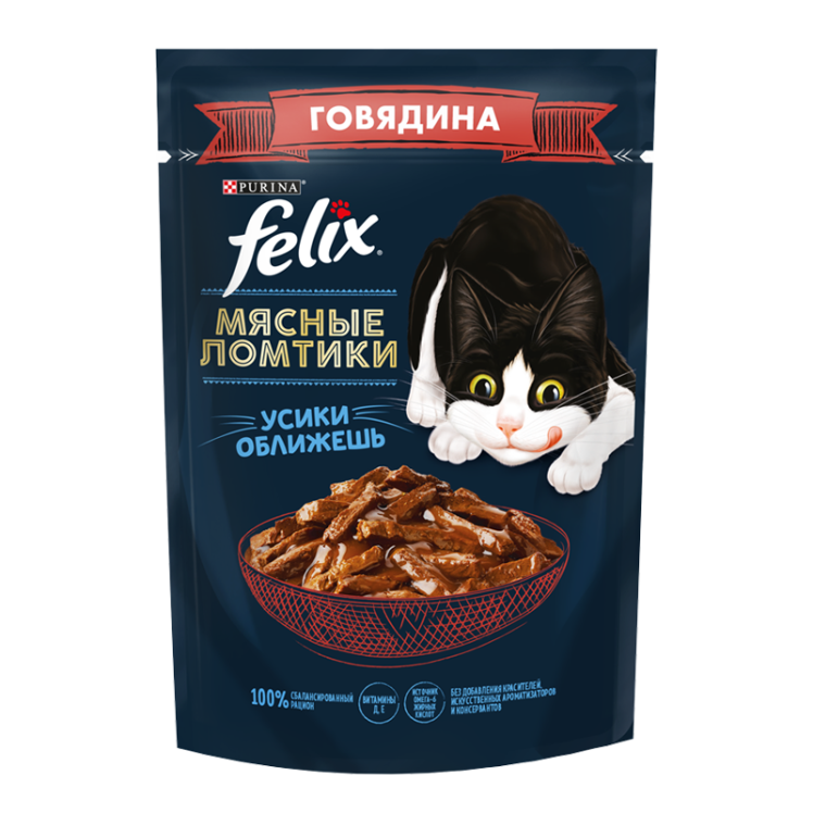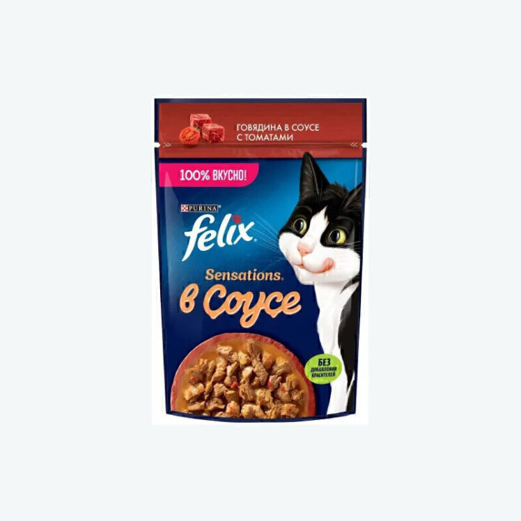 پوچ گربه فلیکس با طعم گوشت گاو در سس گوجه فرنگی وزن 85 گرم