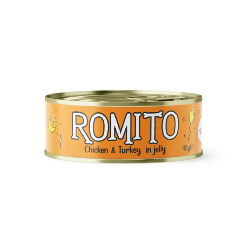 کنسرو غذای گربه رومیتو مدل نچرال با طعم مرغ و گوشت بوقلمون در ژله وزن 90 گرم