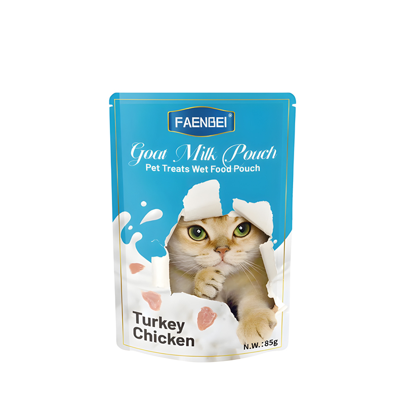 پوچ گربه فنبی با طعم مرغ و بوقلمون در شیر بز وزن 85 گرم