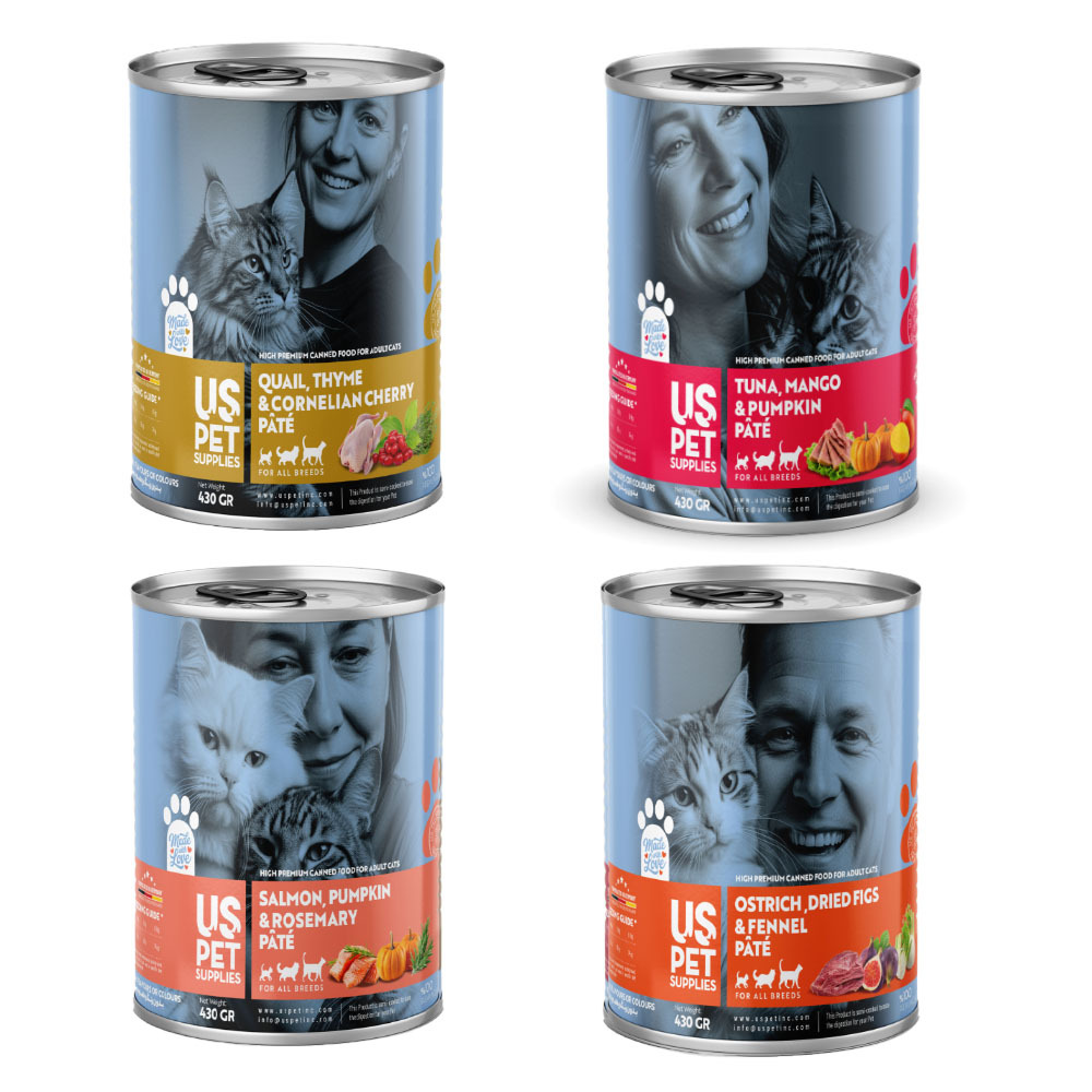 مجموعه شامل ۴ عدد کنسرو یو اس پت گربه 430 گرمی با طعمهای: