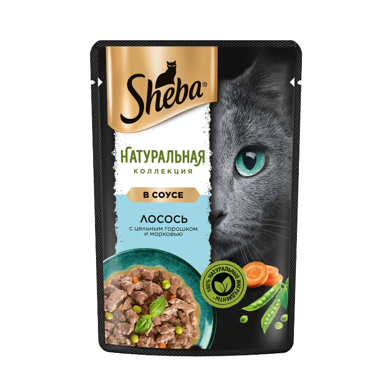پوچ گربه شیبا مدل نچرال کالکشن با طعم ماهی سالمون و سبزیجات در سس وزن 75 گرم