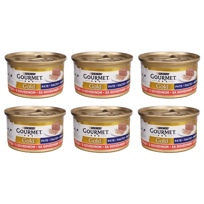 - 6 عدد کنسرو غذای گربه گورمت طعم گوشت گاو وزن 85 گرم