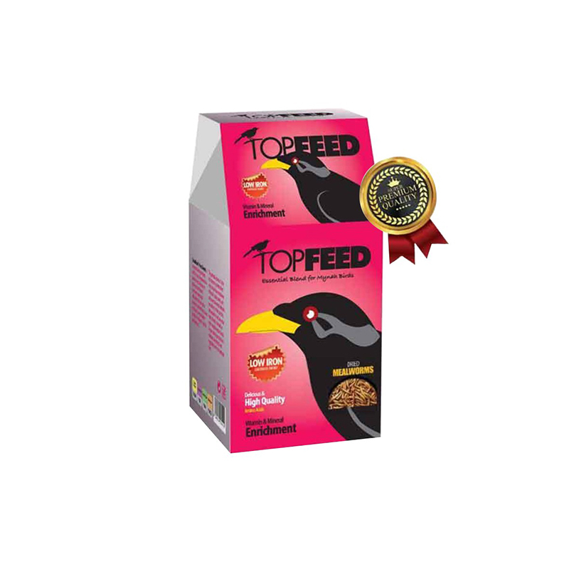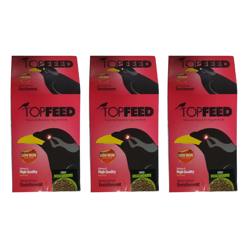 - 3 عدد غذای خشک مرغ مینا تاپ فید همراه با میل ورم وزن 1 کیلوگرم
