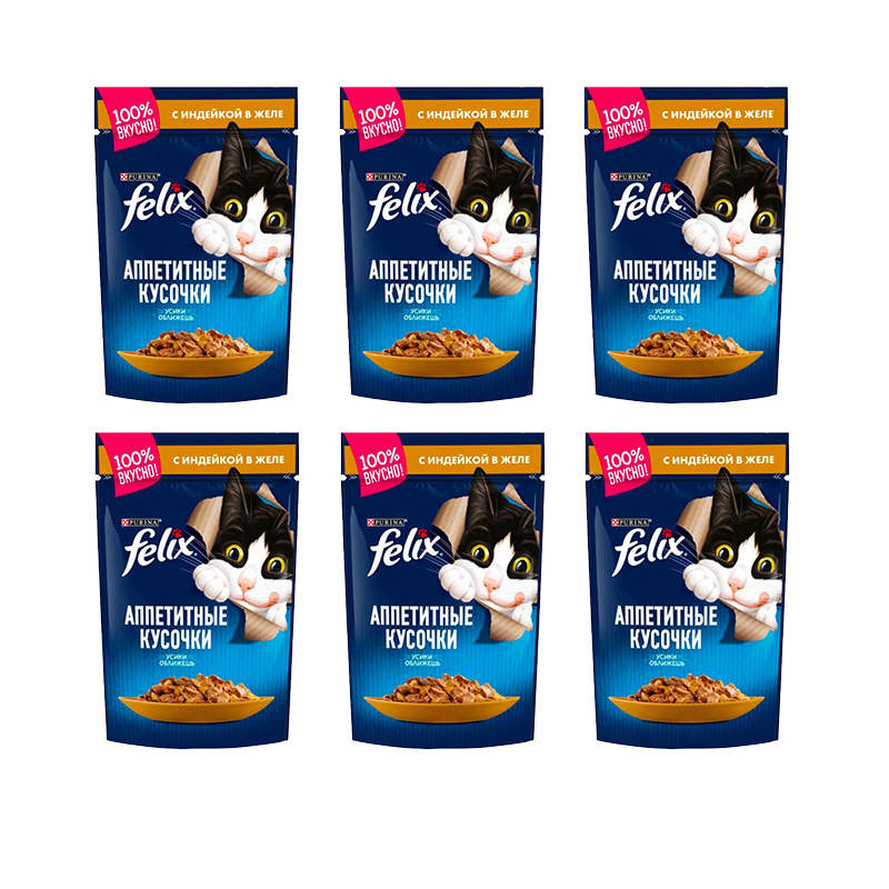 6 عدد پوچ گربه فلیکس با طعم بوقلمون وزن 85 گرمی